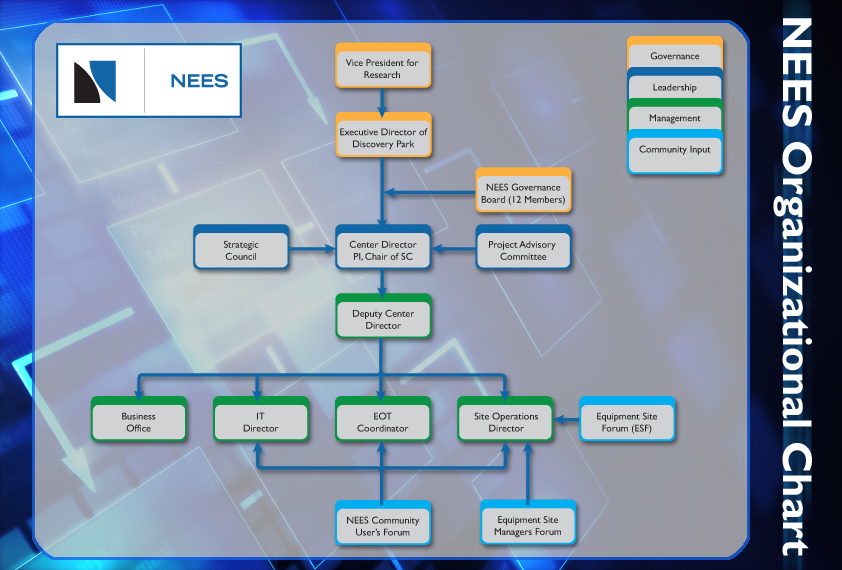NEES organizational structure chart for annual report created in Illustrator and Photoshop.