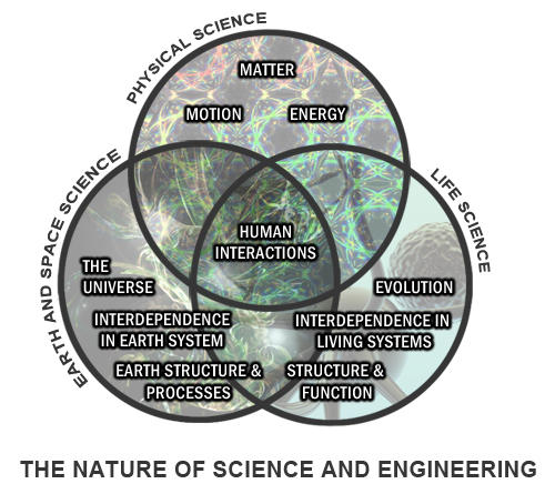 Infographic demonstrating the interplay between physical science, life science, and earth and space science.